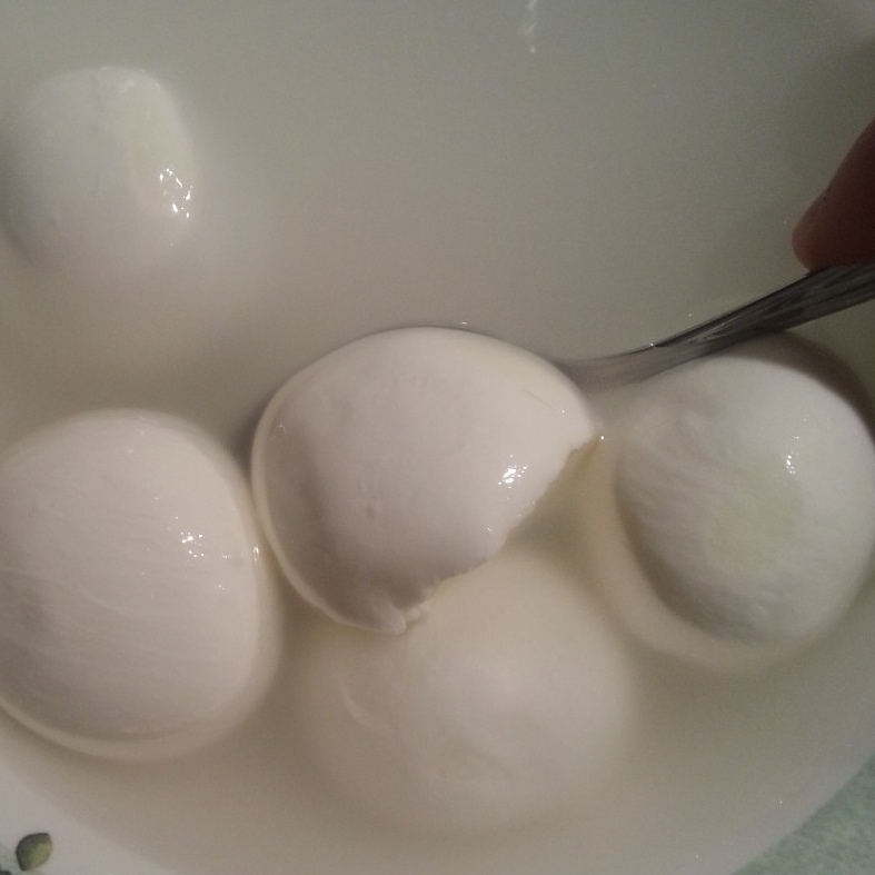 ecco le immagini della mia ultima lavorazione. Le ho postate qui per non andare OT nell'argomento delle mozzarelle con citrico in quanto queste sono state fatte con lo yoghurt.