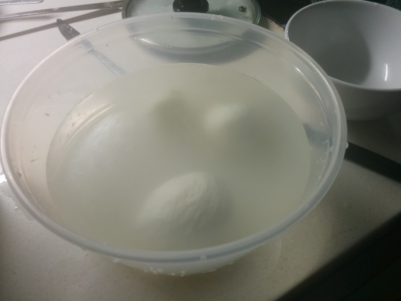 Comunque allego un po' di foto del mio primo tentativo di mozzarella!