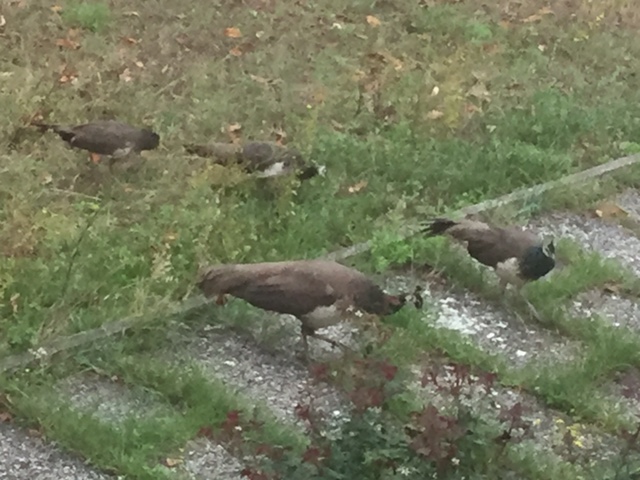E' ora di aggiornare questo post. Ecco le foto della mia pavonessa coi suoi 4 pavoncini di quasi 4 mesi. Li ho tenuti in un gabbione per quasi 3 mesi e poi, all'incirca un mesetto fa, li ho liberati. Ora possono razzolare liberamente e la sera vanno a coricarsi su un alto pino, come hanno sempre fatto tutti i pavoni che ho avuto. Speriamo che il freddo che prima o poi arriverà non creerà loro grossi problemi.