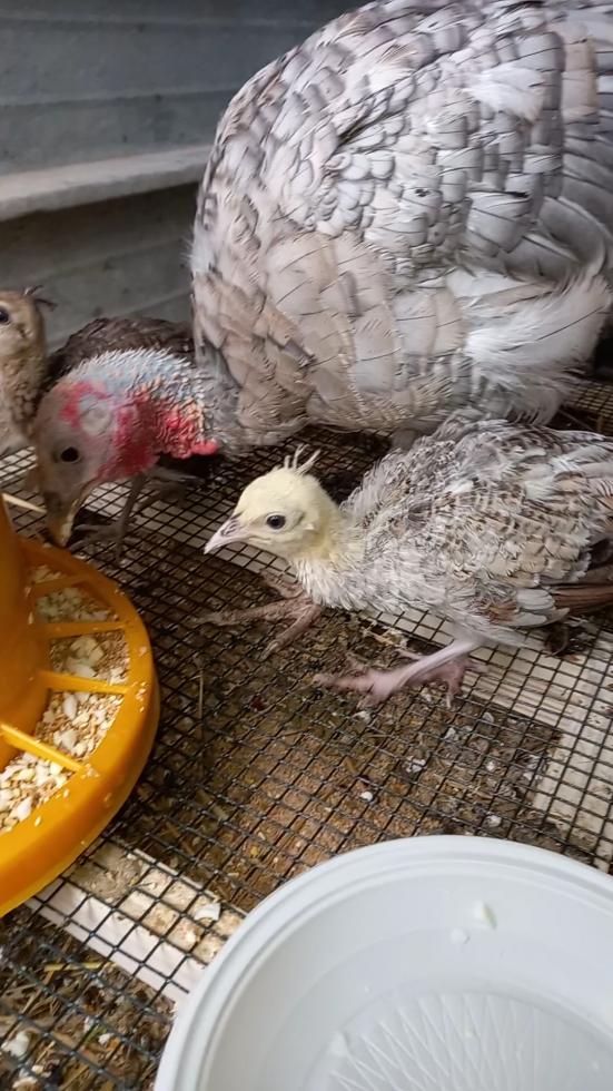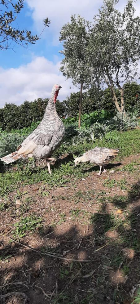 Anche la tacchina è stupenda, mi sembra che fra poco tempo comincerà a fare le uova. Non dovrebbe comunque abbandonare i pavoncini, né beccarli.