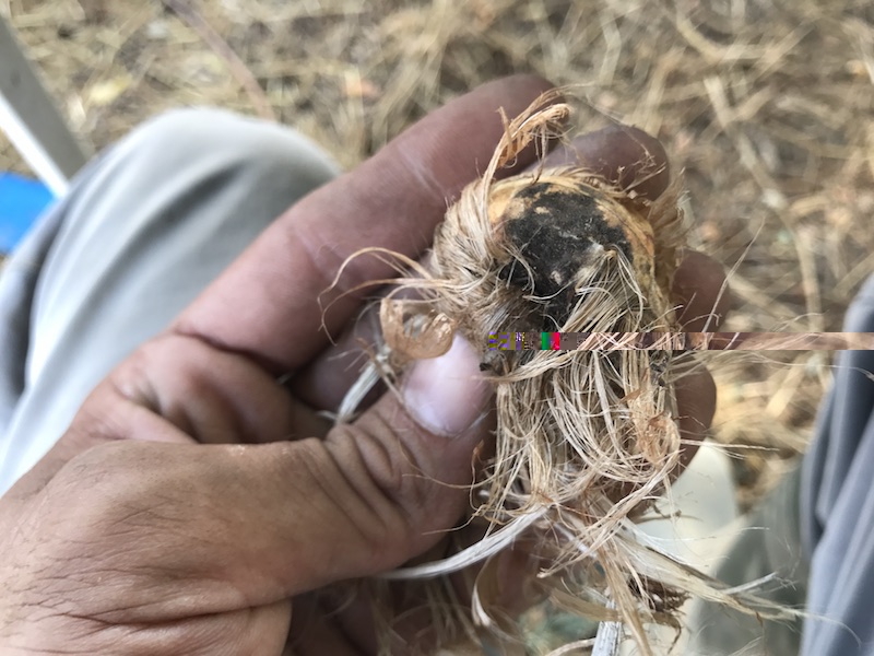 Leggo solo ora il messaggio, altrimenti ti avrei consigliato di portare qualche campione al Servizio Fitosanitario della tua Regione per la determinazione dell'agente patogeno che a prima vista sembrerebbe quello del marciume carbonioso (Macrophomlna phaseollina). Se tale fosse basterebbe una semplice osservazione con microscopio stereoscopico per la ricerca di minuti organi di fruttificazione e conservazione caratteristici (vd. foto allegate illustrative della malattia); diversamente si procede per isolamento su piastra se si trattasse di altri patogeni (es. Fusarium spp. oppure Rhizoctonia sp. per il quale tuttavia si avvertirebbe odore di marcio e i tessuti sarebbero in disfacimento). Ciò allo scopo di: - accertare la eventuale buonafede del venditore, nel senso che, prendendo a riferimento il marciume carbonioso, il patogeno attacca la pianta quando è in campo e i sintomi della malattia sono visibili in quanto a carico della porzione epigea; - evitare di tenerti in casa funghi patogeni in grado di conservarsi per lungo tempo e diffondere la malattia (M. phaseolina tra l'altro ha un range di piante ospiti piuttosto ampio).