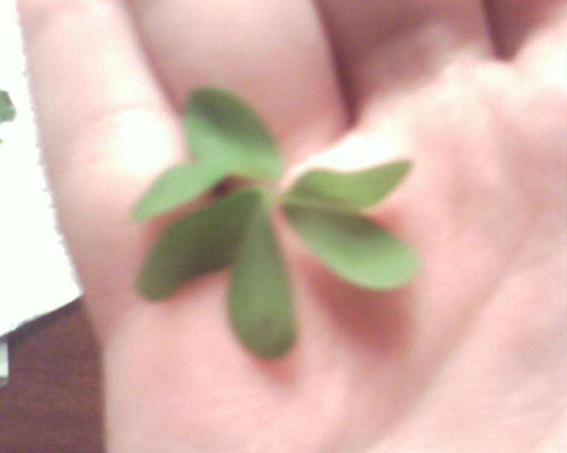 Le foglioline a forma di cuore dovrebbero appartenere ad una pianta di trifoglio che è stato inavvertitamente estirpato assieme alla piantina "fortemente odorosa".