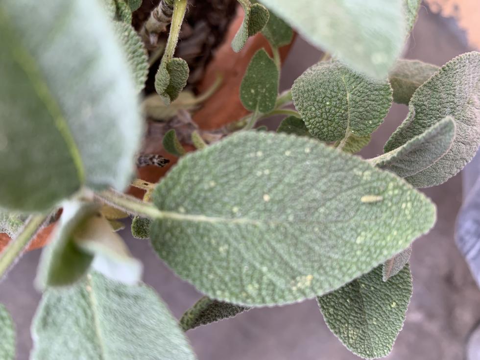 Salve ho la salvia con puntini sulle foglie e ci sono piccoli animaletti che saltano , non sono pidocchi….( vedi foto ) cosa posso fare ?