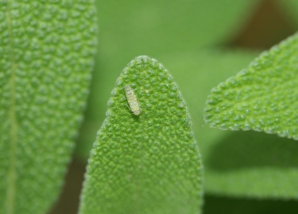 Sono cicaline, molto frequenti su aromatiche; se ne intravvede anche una verso la punta della foglia.