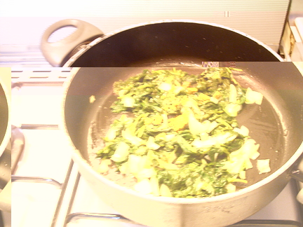 cipolla, dado, gr. 300 silene (o altre verdure), grana, pangrattato, un goccio di latte, 2 uova, noce moscata, olio, burro, farina.