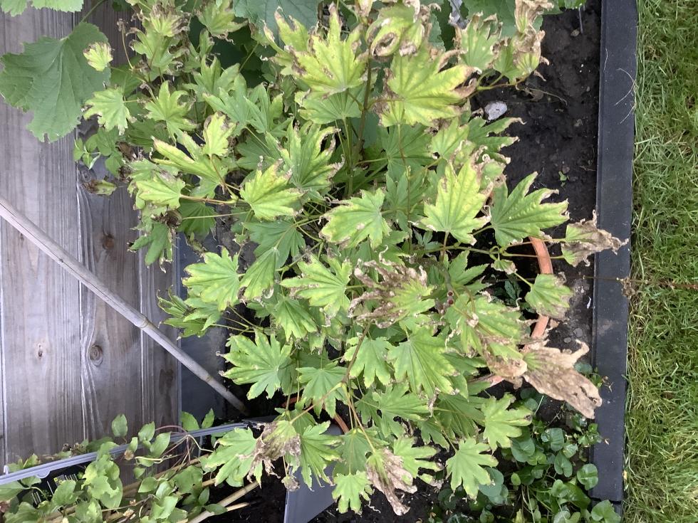 Ciao a tutti, ho questo acero da 3 anni, da qualche settimana le punte delle foglie hanno iniziato a seccare e ora si sta espandendo al resto della foglia, che risulta anche piu gialla. Giardino esposto a sud, vaso vicino a muretto in legno. Acqua non manca, i rami sono vivi, insetti non sembra di vederne. Cosa consigliate?