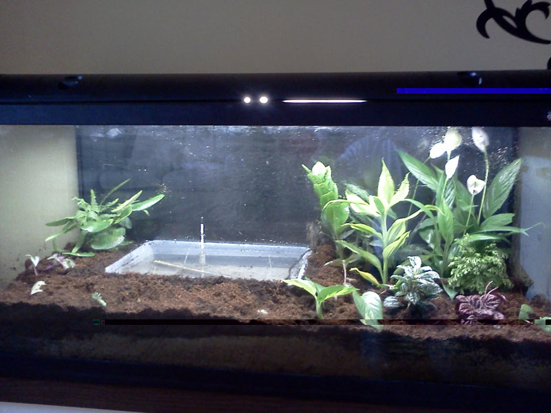 Ciao  la vaschetta centrale serve per "umidificare" tutto (terreno e aria) perchè una volta avviato, vorrei metterci dentro delle "Bombine Orientalis" che sono delle simpatiche rane che amano farsi delle belle nuotate  .. e questo terrario e in sala...ancora è in costruzione !