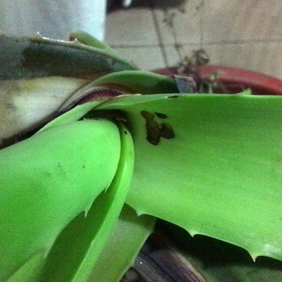 Salve amici del forum! Ho un paio di piante di aloe in vaso, una delle due è la madre e avrà circa 5 anni. Quest'anno ha preso un po' di freddo fuori, poi l'ho subito riportata dentro, ha subito qualche foglia congelata, ma per il resto sembrava sana. Invece in questi giorni sto notando delle macchiette necrotizzate, che non credo c'entrino con gli effetti del freddo che di solito da altri sintomi (foglie più scure a macchie e afflosciate che poi muoiono). La pianta presenta delle bruciature piccoline marrone scuro sparse sulle foglie, come macchiette che affondano nella foglia, dei piccoli buchi necrotizzati attorno, vi mostro qualche foto. L'altra pianta nell'altro vaso è sana perfetta, ha subito il freddo con i soliti sintomi da freddo ma si è ripresa subito. Ogni 2 settimane circa do comunque acqua ad entrambe, anche se è inverno. Forse la pianta madre è ormai troppo vecchia? ma allora come mai anche la figlioletta affianco ha gli stessi sintomi? E' un parassita? basta dell'aglio? alcune foglioline nuove tenere si sono staccate dal nucleo centrale della pianta, presentando alla base di esse questa necrosi nera.