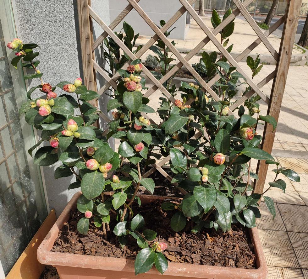 Ho comprato 9 giorni fa ad un supermercato (i vivai purtroppo sono chiusi) due vasi di camelia japonica. In attesa di svasarle e interrarle in un vaso più grande le ho lasciate fuori 4/5 giorni. La pianta al momento dell'acquisto presentava alcuni boccioli fioriti leggermente ingialliti (tendenti al ruggine), mentre gli altri apparivano sani, anche se nel trasporto ne sono caduti diversi. L'ho annaffiata regolarmente e dopo qualche giorno sperando di darle un pò di vigore ho cosparso superficialmente la terra con alcuni cucchiai di fondi di caffè, annaffiandola immediatamente. Non ho usato nessun concime. qualche giorno fa il tempo è peggiorato improvvisamente con un abbattimento notevole della temperatura e con raffiche di vento gelido.