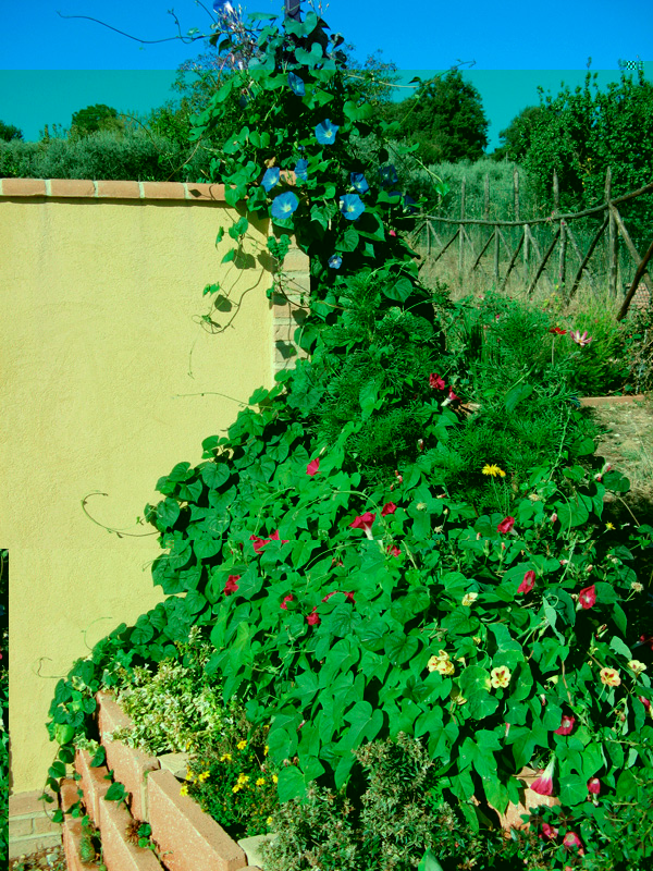 Carissima, ho postato qualche foto qua e là nel forum; una scattata pochi giorni fa è questa, ma avevo poco prima castigato le ipomee con un trattamento antiacaro, quindi i fiori erano un po' sciupati. Rimedierò nei prossimi giorni