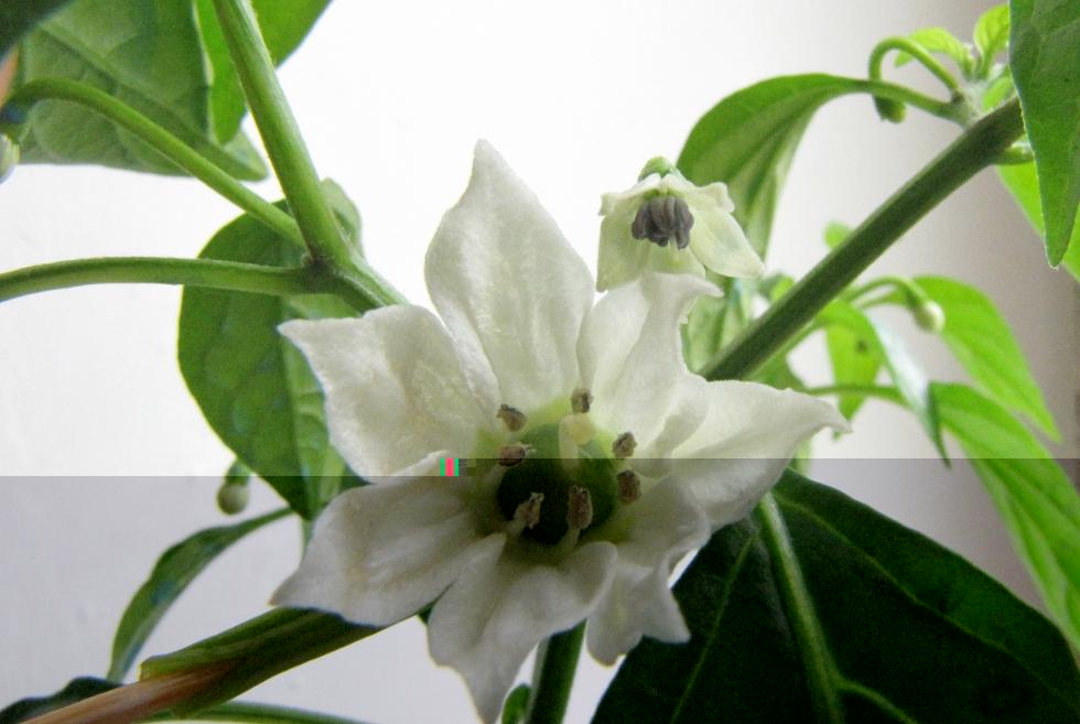 Per farvi capire le dimensioni del fiorellino, ho avvicinato un fiore del c.annuum Hot Tomato - una varietà domesticata.