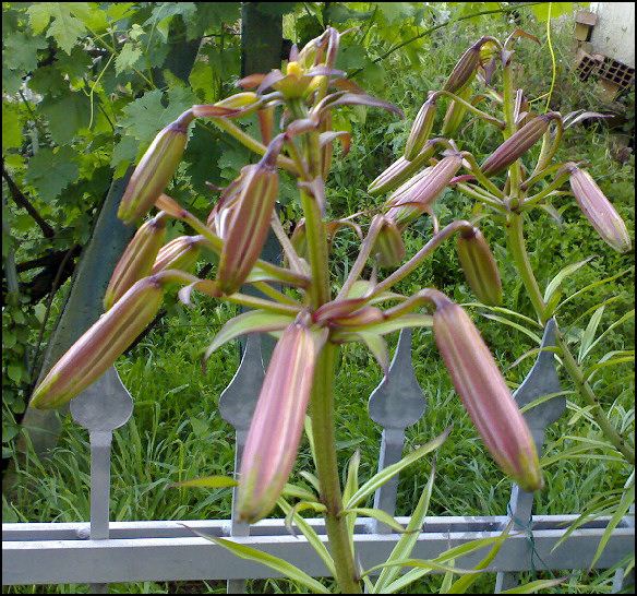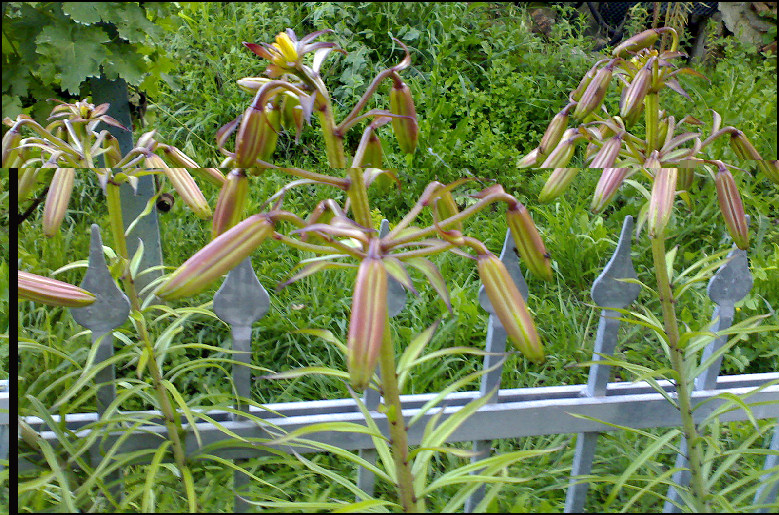 Ecco i fiori che stanno per sbocciare. Mi sembrano proprio dei lilium. Allegato: