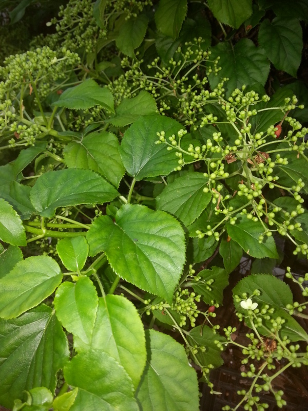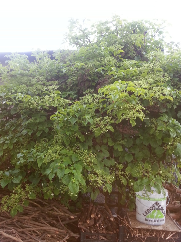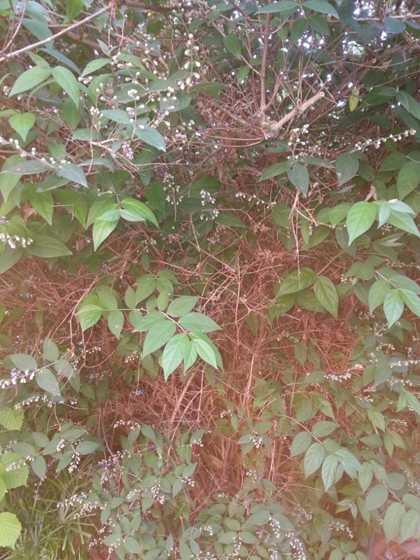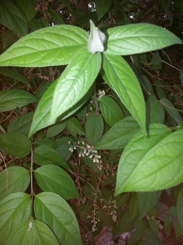 Pianta n°1 - Arbusto di circa 2,5-3 metri di altezza cresciuto tra 2 noccioli. La seconda foto è un particolare delle foglie.