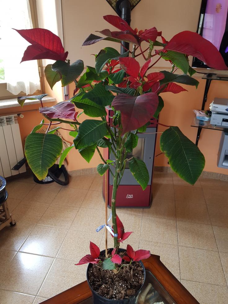 Salve. Ho questa stella di Natale ad alberello comprata a dicembre scorso, volevo qualche consiglio per tenerla in vita anche per questo Natale, in questo periodo noto che sta cacciando dei nuovi germogli, che accorgimenti devo prendere per non farla morire non sono mai riuscito a tenerla in vita per l’anno successivo la tengo in cucina abbastanza arieggiata va bene o devo cambiare ambiente? E volevo sapere se devo cambiare vaso con uno piu grande e che “manutenzione” bisogna fare. Grazie.