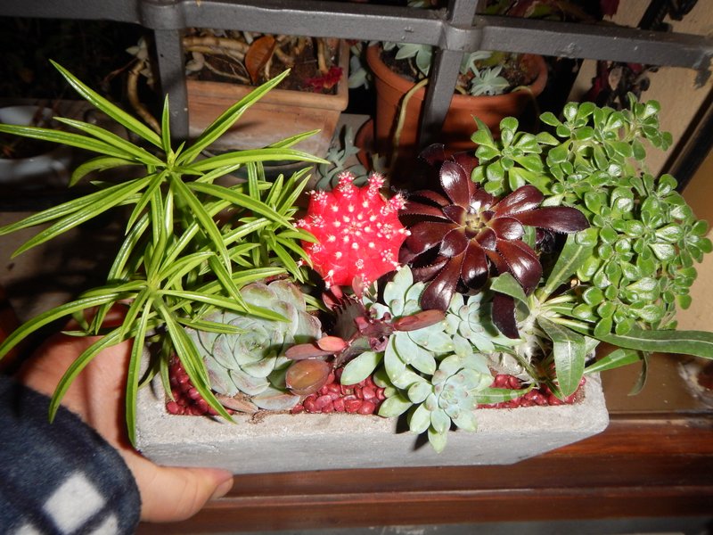 Io toglierei soprattutto quelle due che non sono succulente e che sicuramente avranno esigenze idriche diverse. Le altre potrebbero anche stare insieme ma non avrebbero spazio per crescere e dividerle dopo , quando hanno unito le radici tra loro sono dolori.
