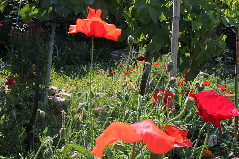 L'unica ipotesi che mi viene da fare e che 6- 7 anni addietro avevo fatto delle piccole mangiatoie per gli uccellini, magari vi erano i semi dei papaveri e sono state disseminate da uccelli e formiche. Ma la stranezza e che quest'anno è apparso il papavero, che posto, per la prima volta. Sembrano moltiplicarsi per quantità e varietà. Per me resta sostanzialmente un mistero. E forse è bello così.