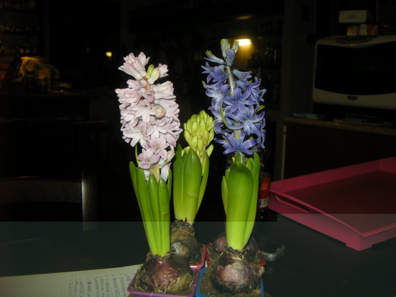 pioppino ha scritto: ormai il giardino è ghiacciato ma non rinunciamo ai fiori in casa sono giacinti in vaschettine li tengo davanti al computer fanno un profumo buonissimo ciao Nino belli.... io invece tengo d'occhio i miei hippe nati da seme. Adesso sono un po' fermi, ma sempre in ottima forma...