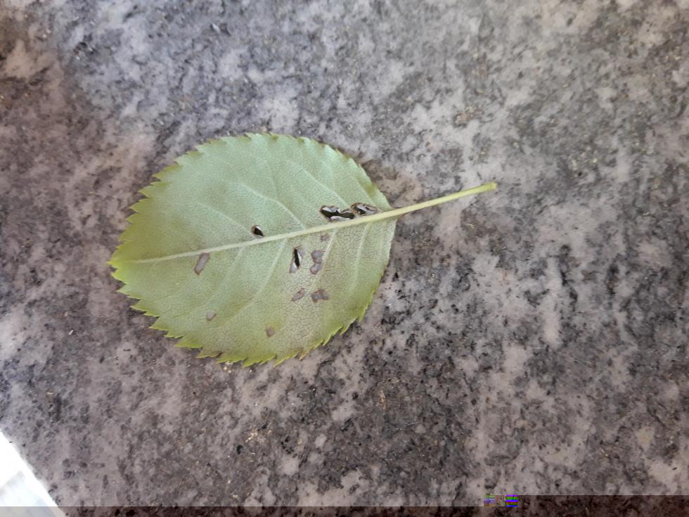 Ci sono macchie da ticchiolatura e segni che al momento interpreto di punture. Dovresti però fare una foto più nitida possibile del retro della foglia, in modo ch'io possa escludere ipotesi (che peraltro stimo remota) di presenza di una diversa altra malattia crittogamica; poi dovresti munirti di una semplice lente e osservare sempre il retro per riscontrare eventuale presenza di fitomizi (= piccoli organismi che pungono per nutrirsi). Ad ogni modo la mia impressione di primo acchito è che si tratti di punture da cicaline (piccoli insetti che volano e saltano) ma, prima di confermare, per correttezza e metodo diagnostico ho bisogno delle informazioni di cui sopra.