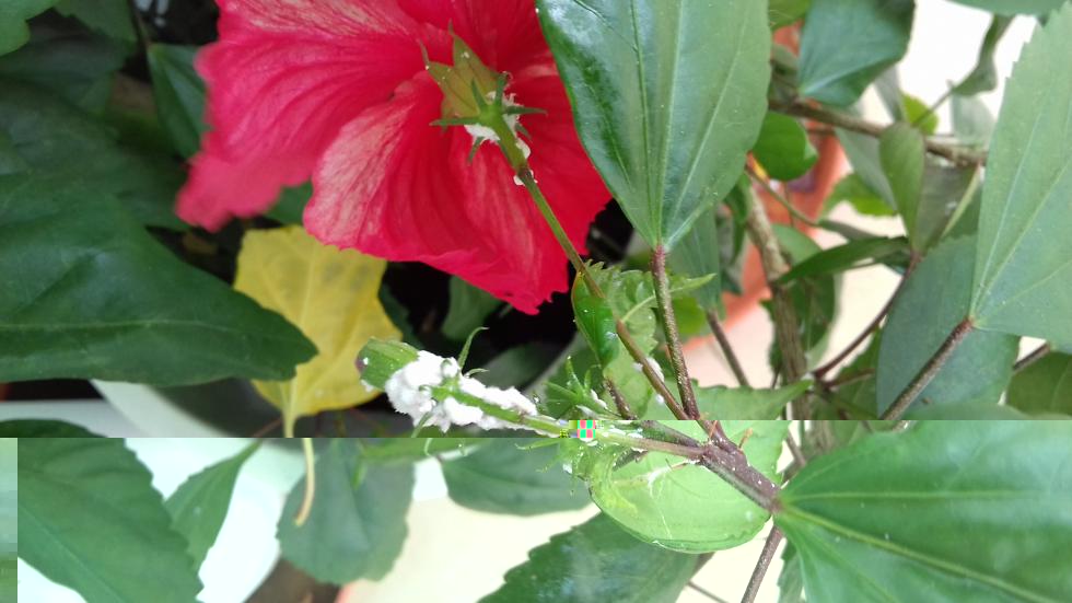 Buongiorno ho due bellissime piante di ibiscus che stanno fiorendo molto bene. Una però presenta un problema. Allego una foto. Sembra schiuma bianca. le due piante soni vicine, innaffiatura simile, non le muovo mai perchè ho visto che prendono sole in ora buona. Vivo ai caraibi quindi fa molto caldo e le piante lo prendono nel pomeriggio dopo le 15. Ho notato anche, in tutte e due le piante, che spesso i fiori ancora non aperti cadono come se recisi da qualcuno. Non capisco. Mi aiutate? Grazie