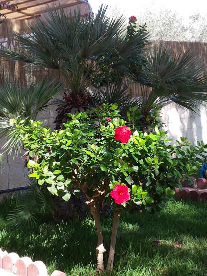 jenajobin dietro la palma c'e un altro ibiscus che l ho fatto crescere ad alberello. grazie anche a te libellula