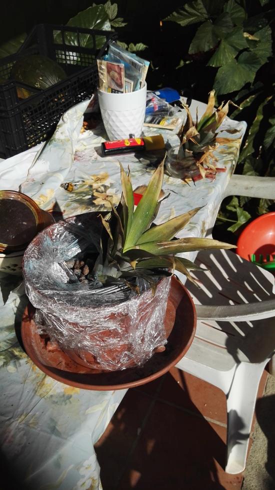 DiegoUrru ha scritto: Buongiorno, anch'io sto provando a fare una piantina di ananas,finora ne sto mangiando a quintali,ma nessun risultato! ieri ne ho comprato un altro, stavolta l'ho lasciato asciugare 24h,e oggi l'ho appoggiato su un vaso con terra e tanta argilla espansa, dentro ha un germogletto, metto le foto, secondo voi, stavolta,ho qualche speranza? Ciao Diego, ci sono diversi procedimenti, io nella mia piccola esperienza ti posso dire che ne ho usati due diversi. Ho tagliato il ciuffo dell'ananas senza lasciare polpa e togliendo molte più foglie laterali rispetto al tuo ed ho lasciato asciugare per 2 giorni. Qualcuno l'ho messo in acqua con degli stuzzicadenti - come faccio con gli avocado- e poi dopo circa 2/3 settimane quando le radici sono già belle sviluppate l'ho piantato in vaso. Altri invece li ho piantati in vaso senza metterli nell'acqua, un vantaggio è che ci sono meno probabilità che marcisca e che se messo in acqua va cambiata l'acqua, disinfettato il bicchiere e l'acqua evapora quindi devi aggiungerla quasi ogni giorno.. Il terreno deve essere drenante, leggermente sabbioso e nel vaso con dell'argilla espansa si eviterebbero marciumi radicali. Il tuo secondo me dovrebbe farcela, ne ho uno che sembrava morto, con le foglie per più di metà secchissime eppure ha attecchito e sta facendo foglie nuove. Non fare asciugare il terreno e considera che le temperature stanno calando, io lo metterei dentro casa ma dove prenda molta luce e senza fargli avere sole diretto..