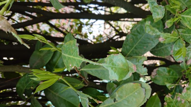Ho una siepe di lauroceraso piantata circa 30 anni fa che da un paio d'anni presenta foglie con i problemi che si possono vedere dalla fotografia. Lo scorso anno, pensando che fossero causati dall'oziorrinco, il giardiniere ha distribuito un prodotto specifico che però non ha avuto effetti. Mi è quindi venuto il dubbio che la causa possa essere diversa, anche perchè ho notato le foglie ingiallite che si possono vedere nella foto. Ho anche notato che i nuovi getti per adesso sono normali e non vorrei che venissero attaccati anche loro. Hai qualche suggerimento? Grazie in anticipo