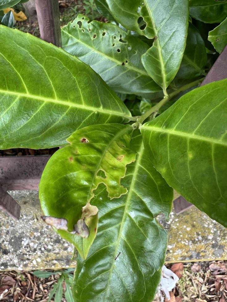 Mi pare di scorgere delle smangiature sui bordi: limitatamente a tale sintomo, se confermi, il responsabile è l'oziorrinco.