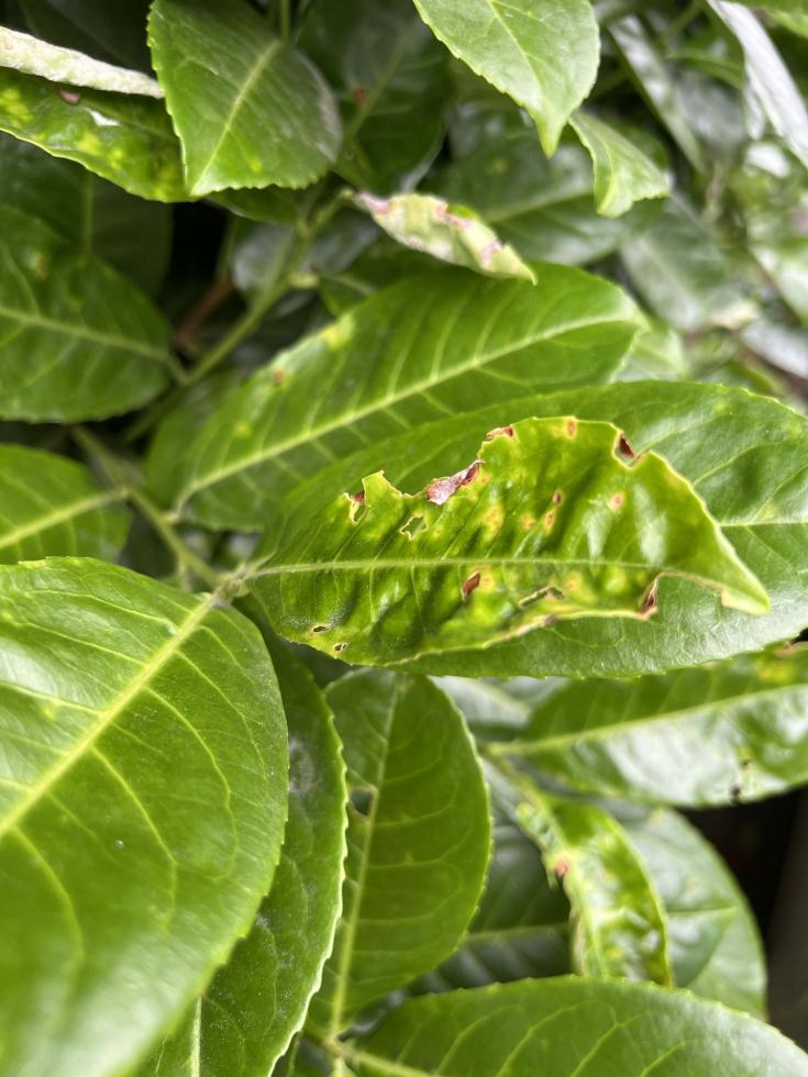 Il lauroceraso è soggetto con frequenza a 'impallinature', ma le cause sono molteplici: mal bianco, a volte altri patogeni batterici o fungini, fisiopatie. Però senza campione in mano è vano pronunciarsi.