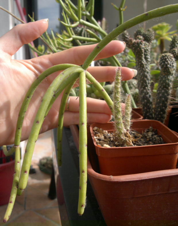 E grazie anche della consulenza.Riguardo al primo post,penso che la prima e l'ultima siano un qualche tipo di rhipsalis o qualcosa del genere,le piante madri quando ho preso le talee avevano già i frutti,lungo i fusti,non agli apici,le tipiche bacche traslucide che somigliano al vischio.Riguardo alla prima delle 4 foto,adesso che mi ci fai pensare,penso di essere stata io a creare involontariamente uno "pseudoinnesto",non saprei neanche come chiamarlo: l'anno scorso per mancanza di spazio e distrazione,la talea la misi nel vaso,che era bello grande,di una rhipsalis pilocarpa.Dopo un po',la nuova arrivata gettò subito un paio di nuovi rami,purtroppo non ricordo se pelosi o no,e la sua collega però iniziò a deperire sensibilmente,fino a quando non realizzai che la nuova talea aveva parassitato la pianta più vecchia(come ho fatto a non considerare che sono tutte e due piante epifite non lo so..).A quel punto le divisi,ed entrambe bloccarono la crescita per l'anno scorso.A Natale la pilocarpa fiorì,e tutt'ora è ancora provata,mentre l'altra senza nome ora sta producendo questi getti che si stanno ancora allungando,che sono pelosi,ma hanno la pelle chiara e lucida.Quei peli di chi sono?Della pilocarpa??Che però ha la pelle scura fin dalla nascita.Bah..Ora sto a vedere cosa succederà con il completo sviluppo dei getti..Una cosa però è certa,non è un'euphorbia.A proposito,a quale ti riferisci?Se le somiglia dev'essere bella..Io ho una tirucallii,piccolina,che si intravvede sullo sfondo della prima foto,per ora ha ancora un bel portamento ad albero,spero che lo conservi e non diventi disordinata..