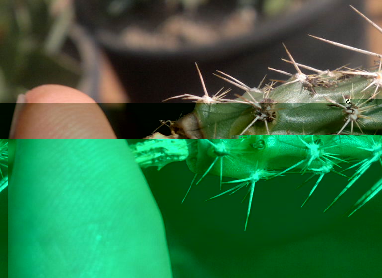 Posto un paio di foto di una malattia a me assolutamente sconosciuta.Non è un insetto, purtroppo,e alcune delle mie piante ne sono colpite da diversi anni,in particolare le opuntioidee,altri generi ne sembrano totalmente immuni.. Questo è un articolo di grusonia marenae, preso ad esempio,nella foto più grande potete vedere il mio pollice per rendervi conto delle dimensioni,nell'altra un forte ingrandimento.La patina giallastra non è appiccicosa. Qualcuno l'ha già incontrata?