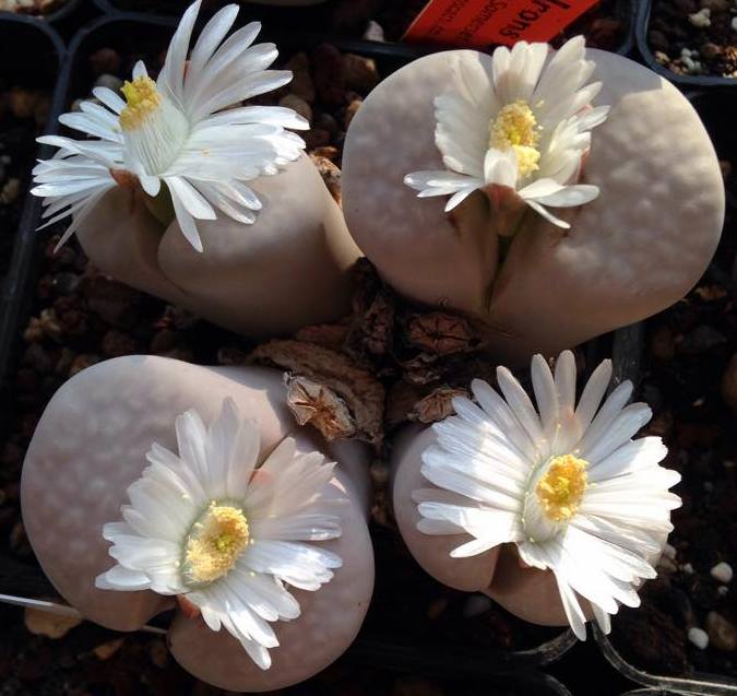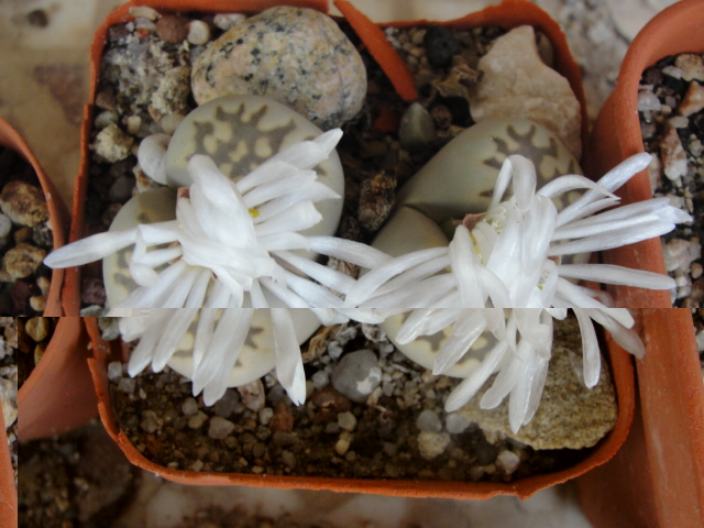 Forme aberranti: già inoltrarsi nel mondo dei Lithops è un campo minato, per le forme normali esistenti in natura (ancora non studiate a fondo dai ricercatori specializzati) se poi si aggiungono le forme aberranti, le cultivar, le varietà che compaiono in coltivazione a volte “spontanee” ma spesso indotte ad arte con vari sistemi, dai grandi coltivatori (specialmente giapponesi), è molto difficile, forse impossibile, raccapezzarcisi. Quindi direi che è prudente, pur tenendo conto delle innumerevoli (e curiose) forme aberranti, stare bene ancorati alle forme e ai taxa naturali.