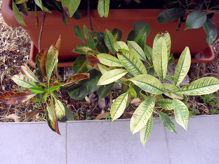 Buongiorno a tutti. Ho un piccolo giardino dove ho una siepe di Fotinia e delle piante in vaso di Lauro. Da un paio di settimane ho notato che ci sono foglie secche, foglie scolorite e in alcuni casi afidi sulle mie piante, vi metto delle foto che valgono più di mille parole. Secondo voi cosa può essere? Potete consigliarmi un trattamento? Grazie a chiunque mi risponderà.