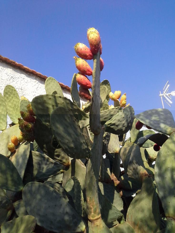 Questa pala di fichi d'india a frutto rosso, sono 2 anni che si trova in fitocella nemmeno la innaffio, non trovo mai il tempo per piantarla  forse perche ho alberi e quella singola paletta non la noto nemmeno  La pianta grande a frutto bianco avrà circa 40 anni, le altre 15 anni.