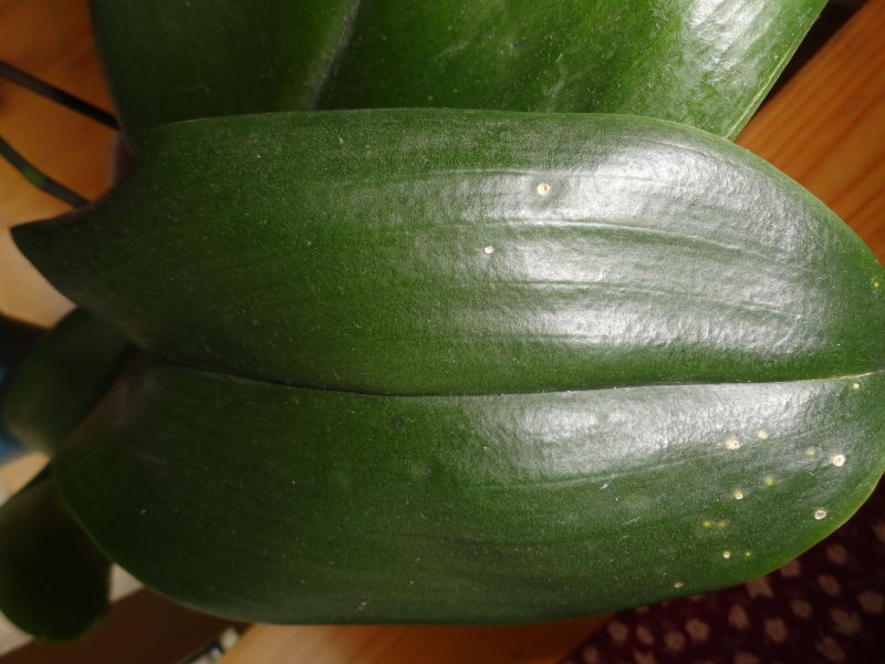 ciao, ho alcune foglie di orchidee phalenophsis che sono puntiricchiate color marrone, in alcune foglie non in quelle macchiate ho notato come una colla bianca sotto la foglia e l'ho tolta con un batuffolo di alcool ma dopo 1 giorno erano come prima, cosa posso fare?