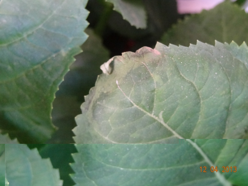 In allegato l'ortensia come si presenta ora con il dettaglio di alcune foglie "malate".