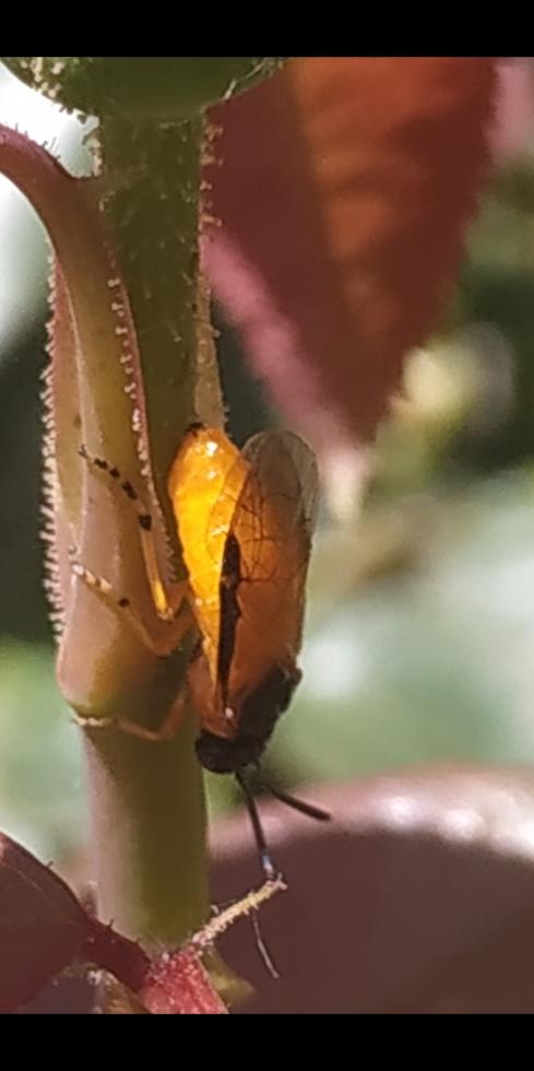 Oggi ho brevetti in flagranza di reato l'insetto che vedete in foto, ho fatto una ricerca e dovrebbe essere una mosca delle rose. L'ho osservata e ho visto che stava pompando con la parte posteriore, quando ho cercato di staccarla ho capito che era "pinzata" allo stelo. Osservando lo stelo ho visto che aveva praticato delle incisioni dove dovrebbe aver depositato le uova. Come risolvo, taglio lo stelo con il bocciolo oppure posso evitare la schiusa delle uova?