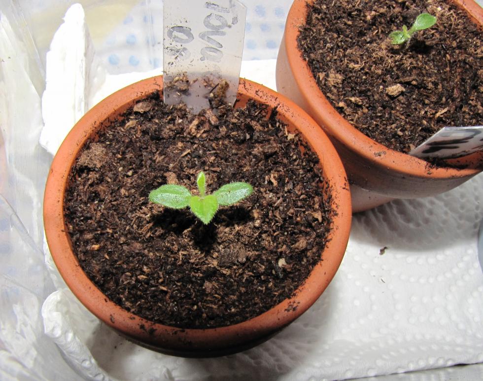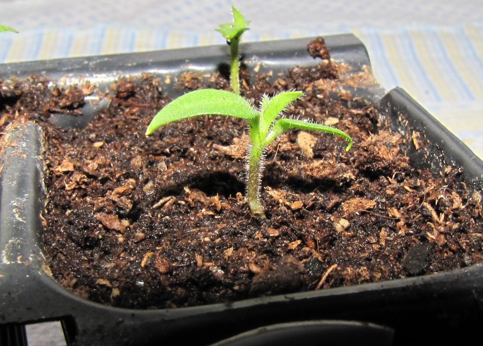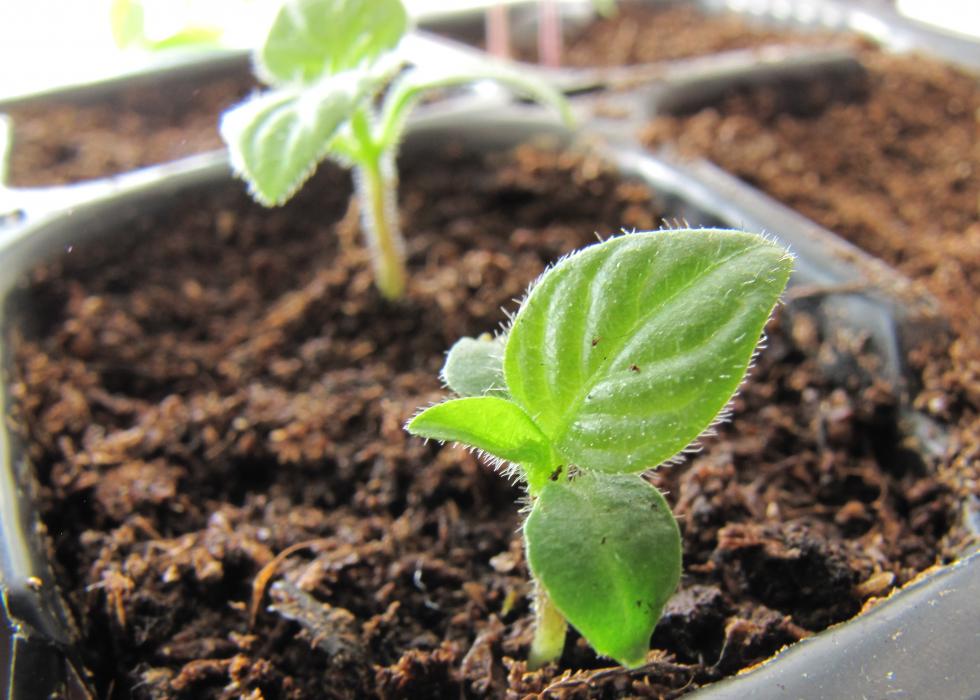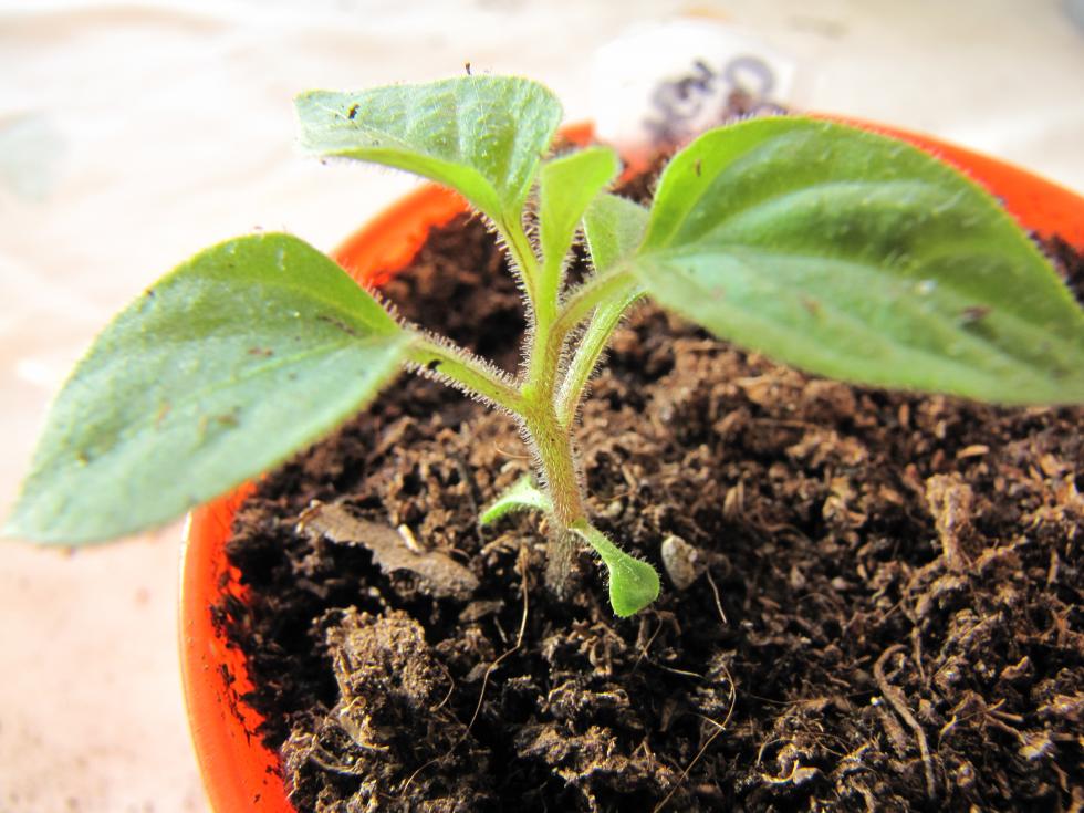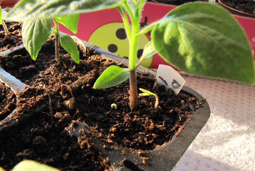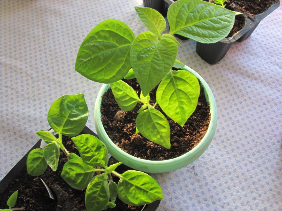 Il Capsicum tovarii più piccolo ha, ormai, il proprio vaso ( più piccolo ) e le due foglioline ( piccole )