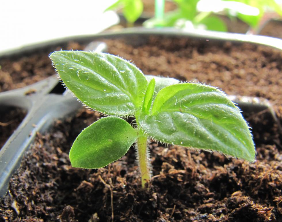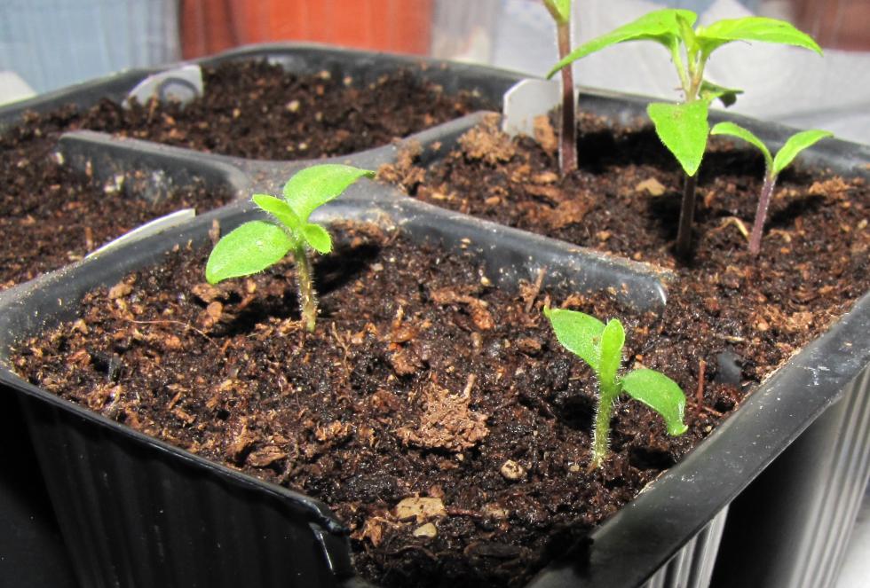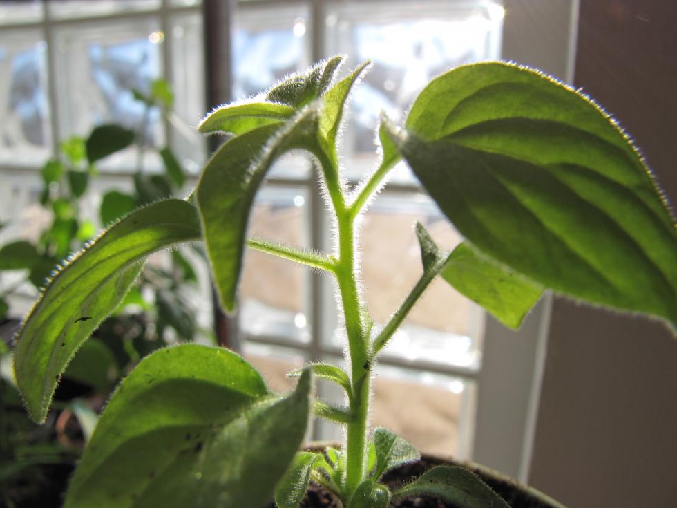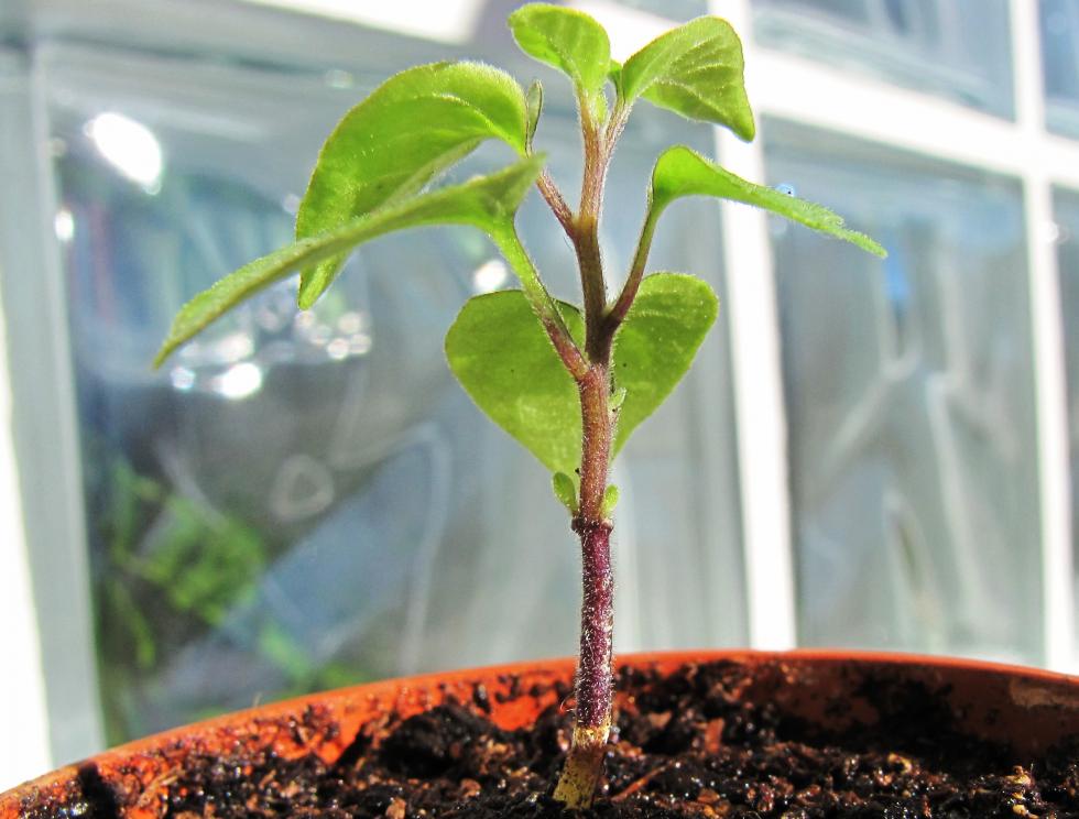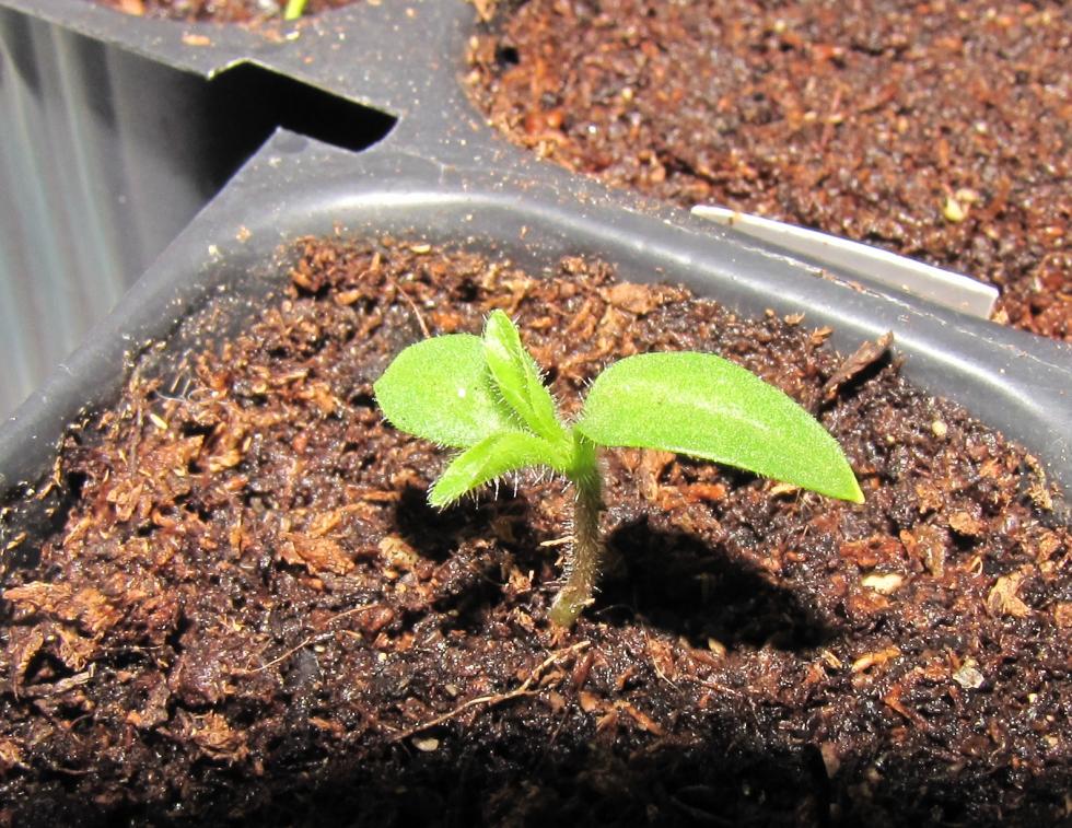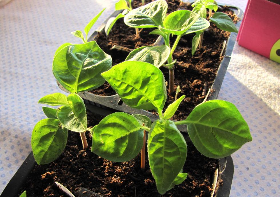 Il Capsicum tovarii più piccolo ha, ormai, il proprio vaso ( più piccolo ) e le due foglioline ( piccole )