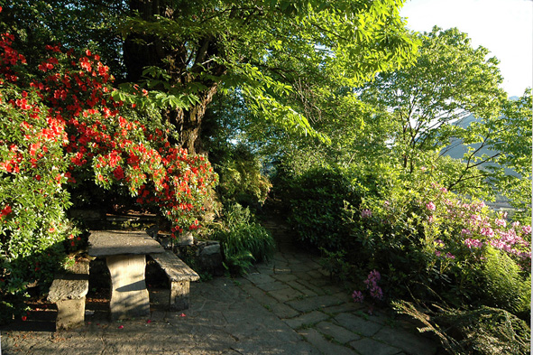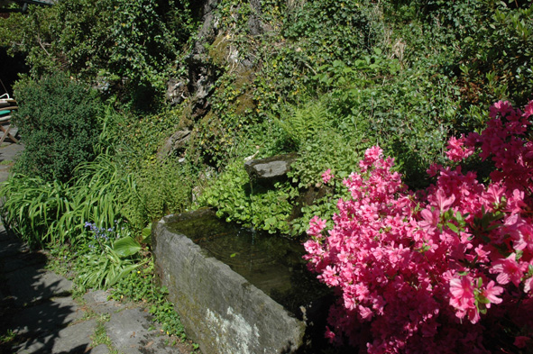 Grazie mille Ilona (e qui riconfermo l'apprezzamento che avevo fatto nei tuoi confronti). Ma come fai a trovare tutte queste informazioni? Tu devi avere nella testa un'intera enciclopedia di botanica Io, prima di chiedere aiuto, avevo sfogliato tutti i libri di fiori e piante in mio possesso senza trovare nulla... Aggiungo, per ciò che riguarda la pianta ancora senza nome, che credo sia spontanea e cresce nei pressi di una fontanella perciò penso ami l'umidità. Allego una foto dell'insieme dell'habitat in cui prospera e, visto che apprezzi gli angoli semplici, e una foto delle azalee in fiore. Si, mi ritengo fortunato perché abito in un posto, per me, bellissimo che cerco di mantenere il più naturale possibile. Ciao e grazie ancora. Allegato: