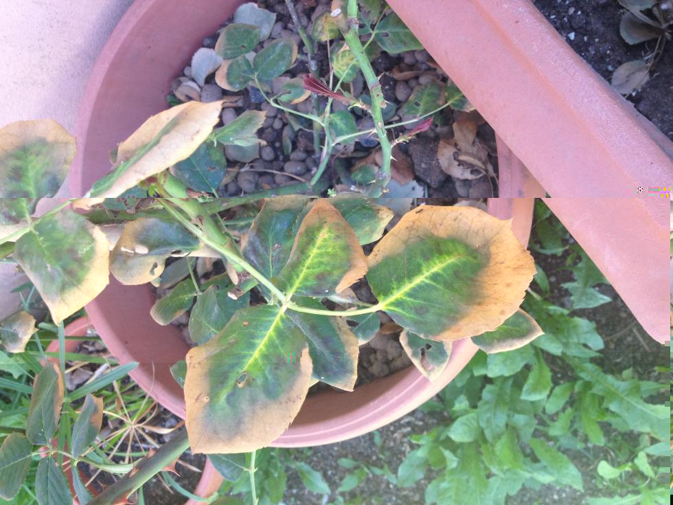 Buonasera, allego foto della mia pianta di rosa che presenta il bordo delle foglie gialle..non secche ma tipo lesse... di che cosa si tratta...