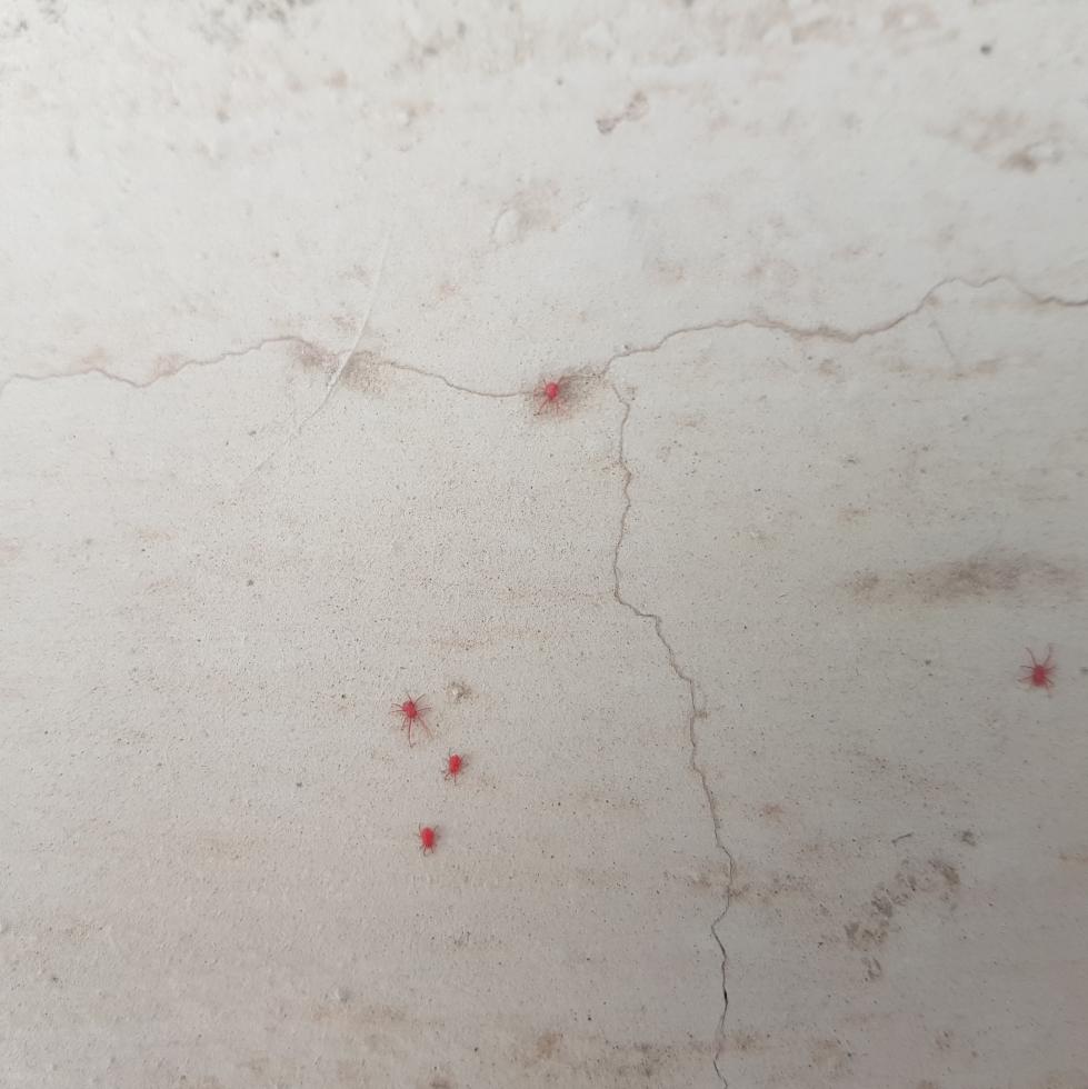 Quello citato da Ilona secondo Wiki è comune sui muretti e si nutre prevalentemente di escrementi di uccelli; un'altra specie molto comune sempre sui muri si chiama Balaustium murorum ... come dire!?... nomen omen ;).