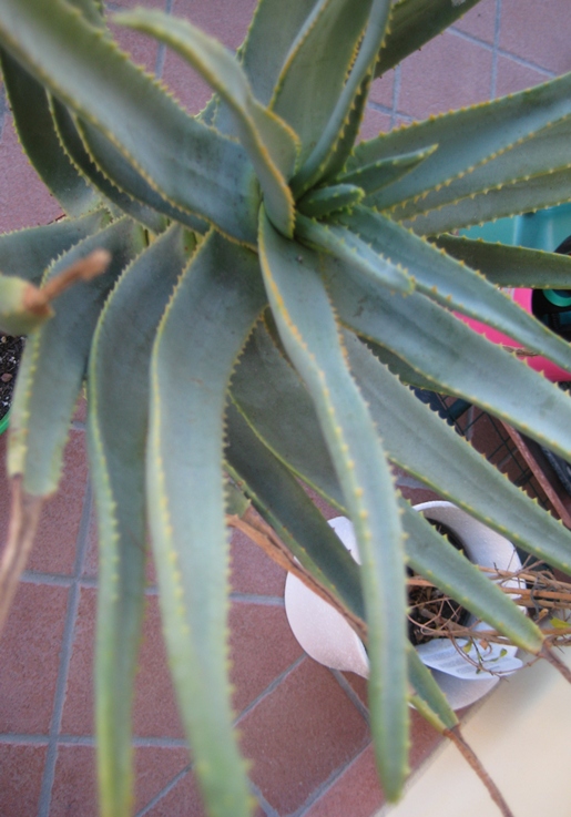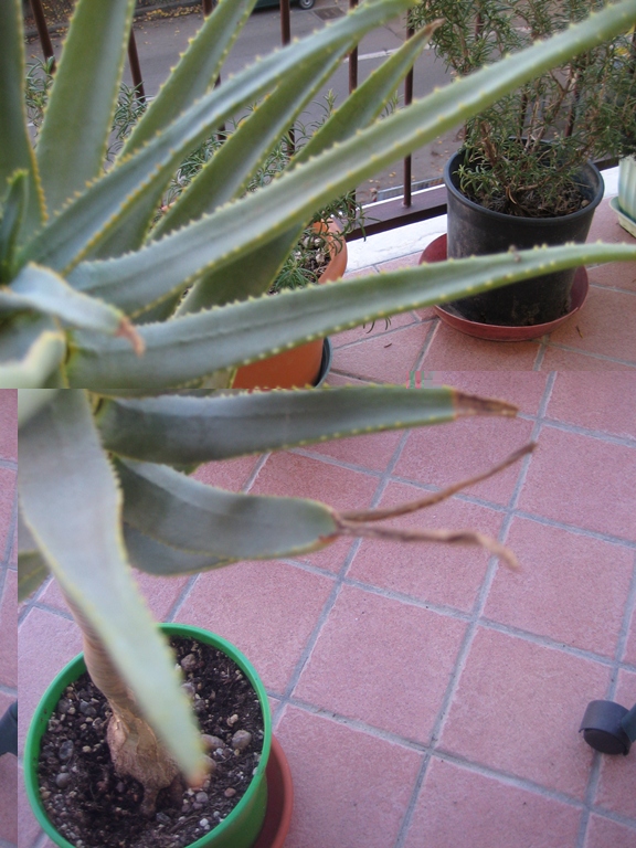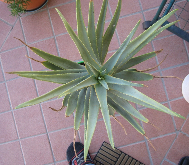 Ciao bella gente, vorrei presentarvi un'aloe acquistata tempo fa da mia moglie: non credo sia aloe vera, forse arborescens. Qualcuno sa identificare la specie? Poi, mi piacerebbe sapere quali sono i giusti accorgimenti per prendersene cura: noterete dalle foto che presenta annerimenti o, meglio, essicamenti ai vertici delle foglie via via in estensione. grazie per l'attenzione!