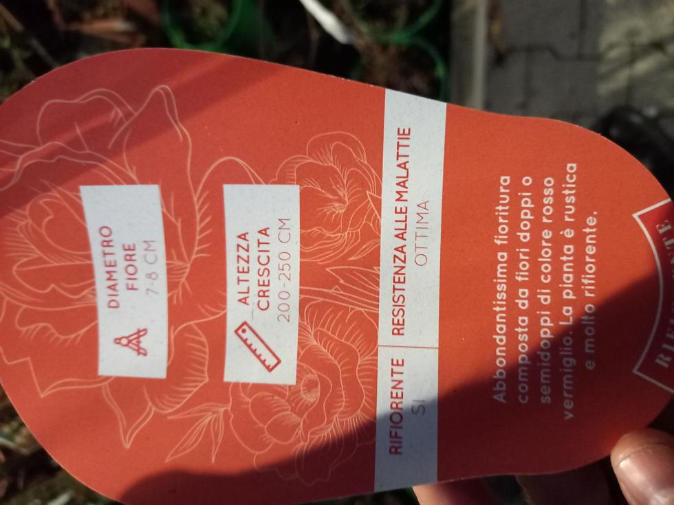 Grazie, alla fine ho optato per una sevillana di meilland. Sul cartellino dice fino a 250 ma leggendo sui vari forum dovrebbe arrivare anche oltre. Si vedrà..