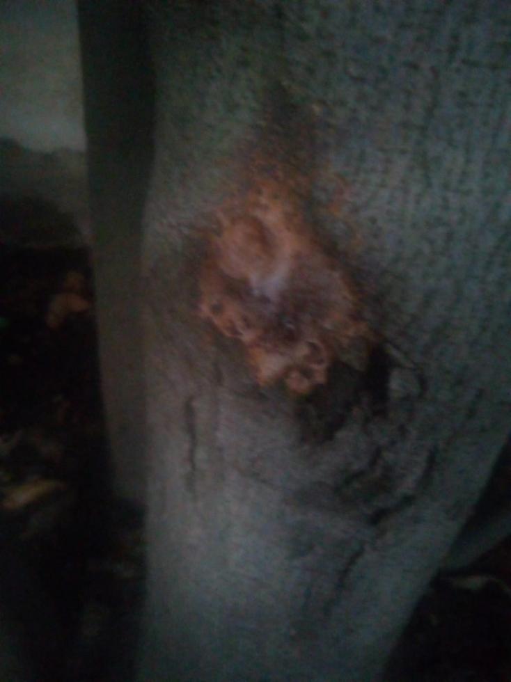 ho una siepe di alloro larga solo 2,5 m ma importante perchè fa da divisorio con il vicino. L'alloro è stato paintato 25 anni fa e è stato potato ogni anno per tenere la forma squadrata, ma ora una parte, quella più a destra, a poco a poco si sta spogliando. Da un paio d'anni a poco a poco ha iniziato a seccare delle branche, infatti alla base è spoglio. Le foglie sembrano più chiare di quelle del resto della siepe, anche se dalla foto non si vede bene, e anche oggi ho tagliato un ramo in cui queste foglie, più gialle, erano evidentemente morenti e noin presentavano nuove gemme. Alla base del tronco c'è questa ferita, o carie, che credo sia la causa del deperimento. Prevedo che entro un altro paio d'anni, questa parte di siepe sarà del tutto morta lasciando uno spazio indesiderato. Mi chiedo se sia meglio aspettare che faccia il suo corso, lasciando esterndere da quella parte la siepe ancora sana, o se sia meglio segare alla base e sperare che spuntino dei polloni