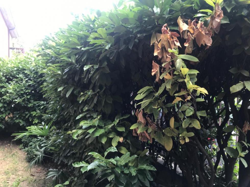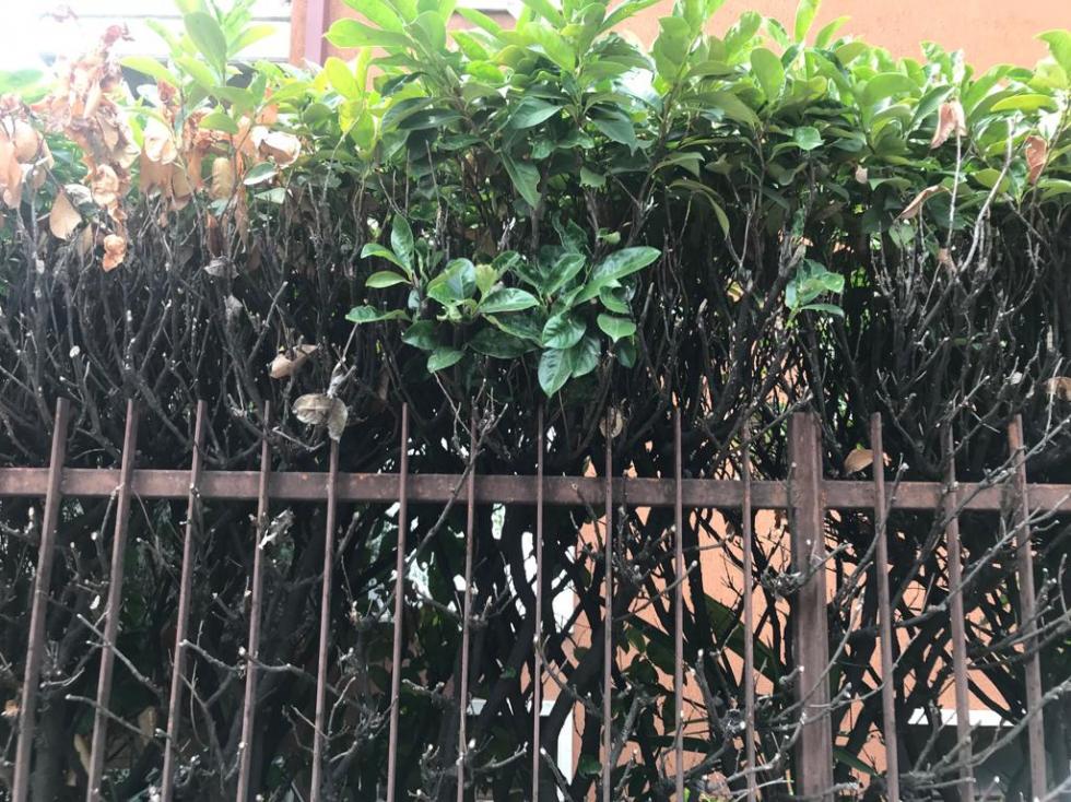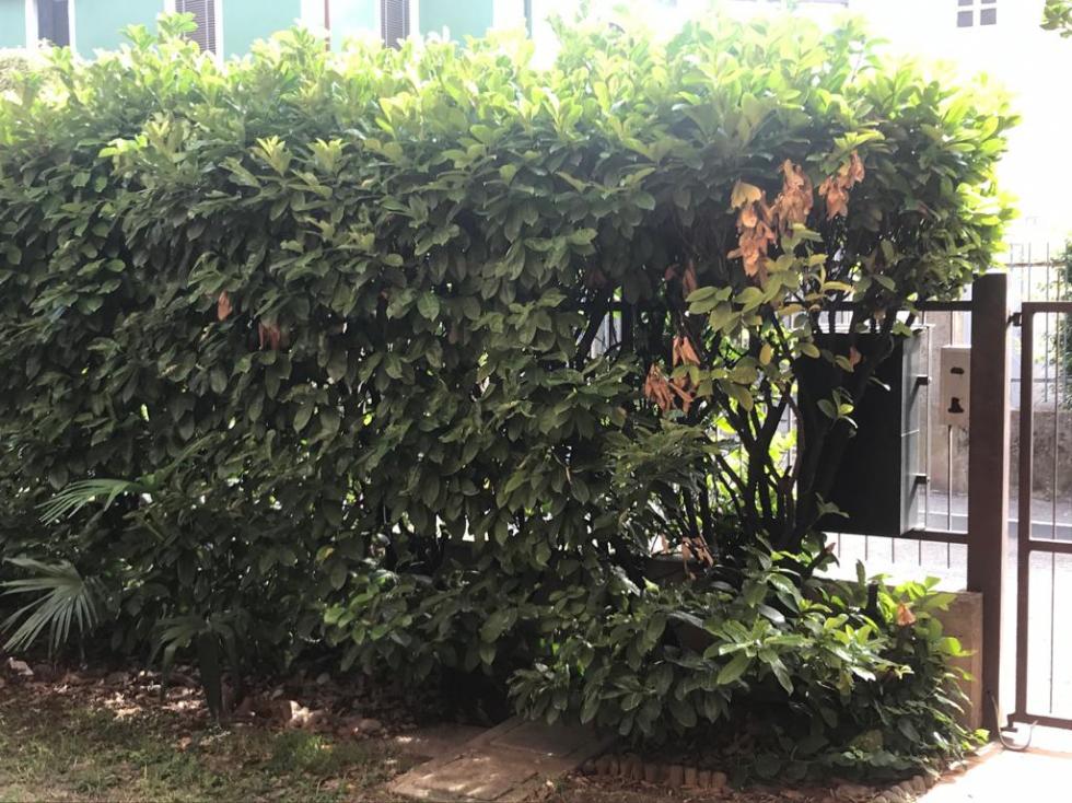 Vivo a Verona, la siepe ha più di trent'anni, delimita tutta la recinzione del piccolo appezzamento di terra di casa mia, l'ho sempre potata e annaffiata, ma quest'anno ad inizio stagione, sono iniziati alcuni problemi, che nel giro di alcuni mesi, sono completamente precipitati. In alcuni punti la siepe è completamente seccata e in altri le foglie non hanno decisamente un bell'aspetto.