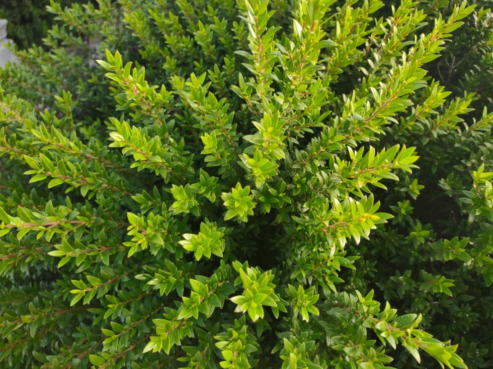 mi affaccio di nuovo al Form per chiedere aiuto: nelle aiuole del Comune hanno piantato tempo fa questi bellissimi cespugli sempreverdi, che presentano folti rami con piccole foglioline verde brillante, lunghe 1,5 cm e larghe non più di 0,6 cm, allungate e appuntite. In questo periodo si riempiono di piccole bacche viola scuro, tendente al nero.