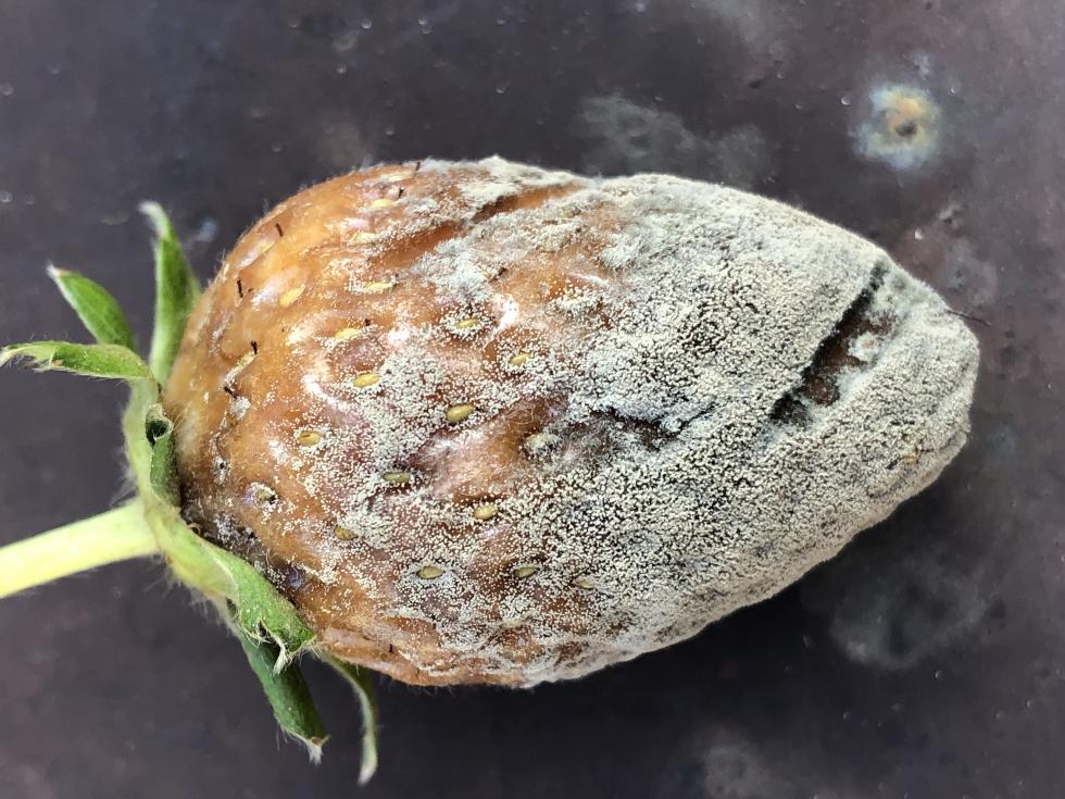 Ho parecchie piante di fragole che fruttificano ancora. Una però l'ho trovata in queste condizioni. Invio foto per vedere se si può capire di cosa si tratta. Grazie
