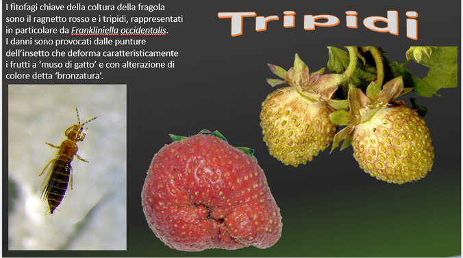 Controlla se ci fosse qualche frutto che presenta bronzatura (allego immagine da una mia presentazione corso UNITRE) che indicherebbe la presenza di tripidi (esaminando con cura le piantine si possono comunque rilevare), e in tal caso si può valutare se prendere qualche provvedimento.