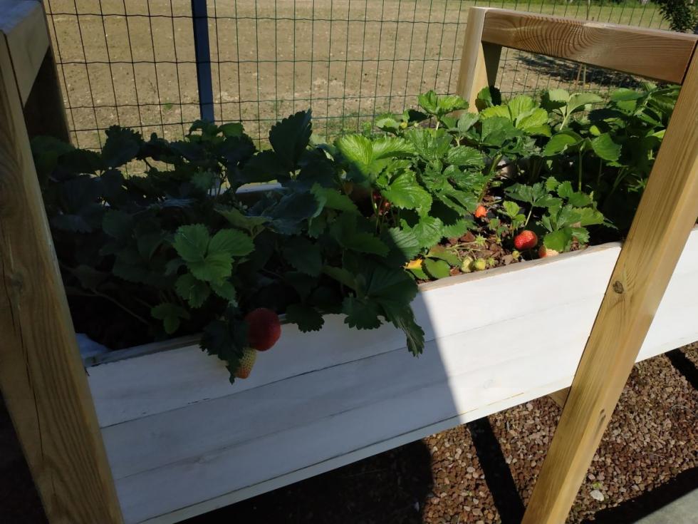 per hobby 3 mesi fa ho costruito una fragolaia rialzata per tenere lontane limacce, poter usare un terriccio ad hoc e non spaccarmi la schiena per le cure... Vi trasferito alcune piante di Gemma (unifere) e Mara de Bois (rifiorenti). Tutte hanno gradito la nuova sistemazione e sono partite alla grande vegetando e fruttificando malgrado il pessimo tempo e la pioggia costante.