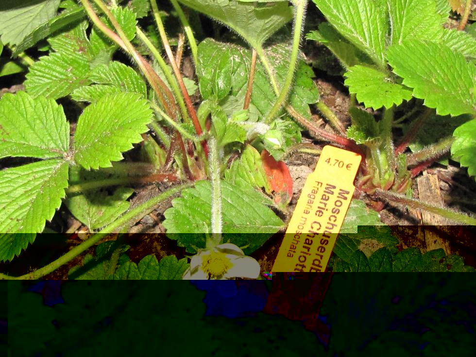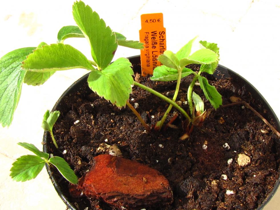 Per adesso questi ministoloni fa anche la fragaria vesca "Weibe Baron Solemacher" da seme, cioè dovrebbe essere quella, però le fragoline non sono bianche...